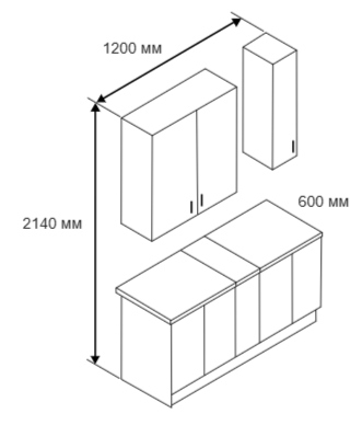 Размеры: 2140 x 1200 x 600 мм — оптимальное решение для прямой планировки кухни.