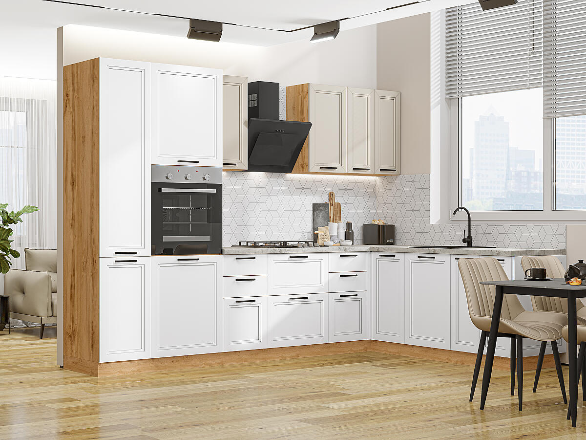 Кухонный гарнитур Нео-03 в неоклассическом стиле идеально подойдет для тех, кто ценит элегантность и функциональность. Гарнитур доступен в трех цветовых исполнениях: White Silk, Cream Silk и Grey Silk, что позволяет выбрать оптимальное сочетание для любого интерьера.