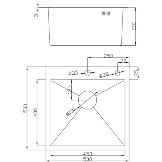 Мойка квадратная Practik PR-М 425 с отверстием под смеситель