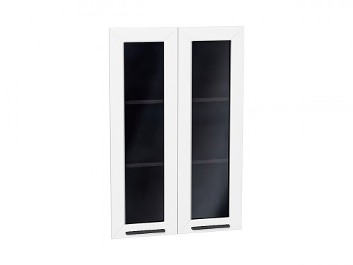 Фасад кухни «Глетчер» выполнен из МДФ с приятной на ощупь пленкой ПВХ «Soft Touch» и чёрным зеркальным стеклом Lacobel.