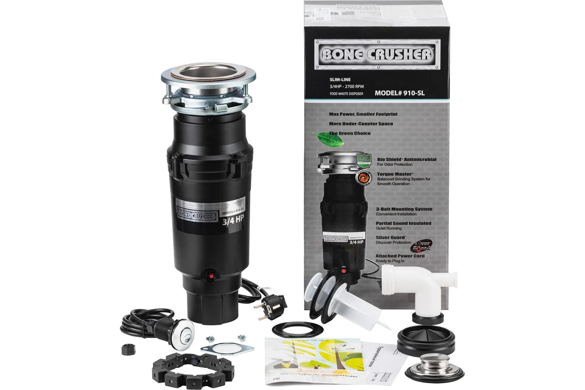 Bone Crusher 910 Slim Line - cамый мощный, самый компактный, самый тихий, самый легкий и самый производительный измельчитель пищевых отходов для мойки.